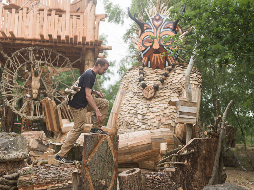 ▼Thomas曾在世界各地的叢林中造夢,這次他來到比利時,在叢林中留下了一座名為《The 7 Trolls and the Magical Tower》的作品。這個作品由7個7公尺到18公尺高的巨人,還有一座17公尺高的高塔組成,Thomas為巨人們創造了有趣的背景故事。