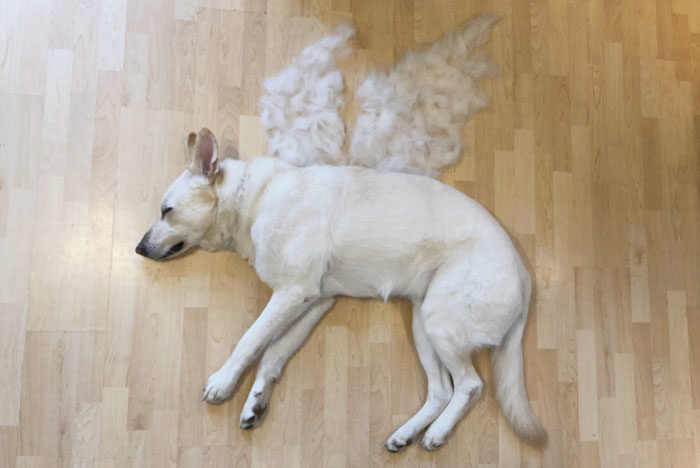 ▼Rachel將狗狗掉落的毛毛塑造成各種各樣的造型,比如天使的翅膀。