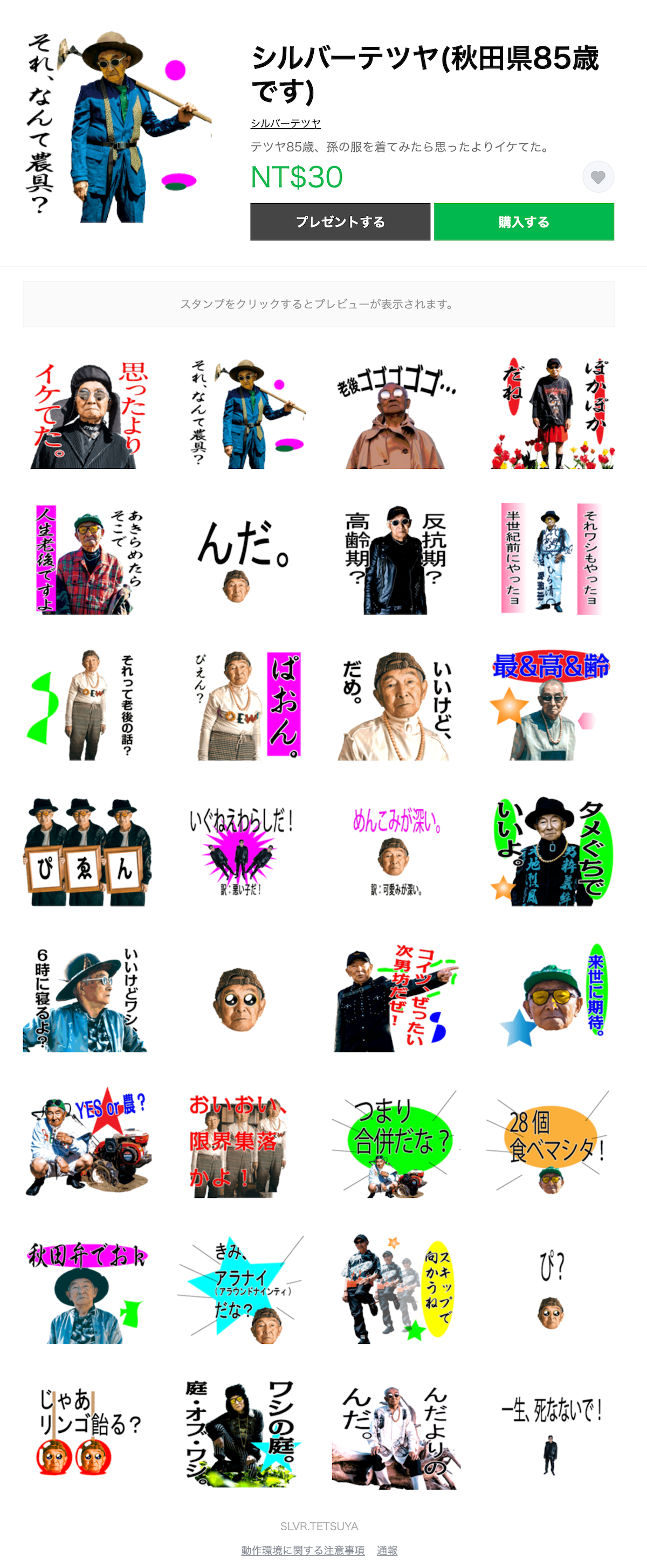 ▼還有在今年3月27日出了一本攝影作品,書名叫做「テツヤ85歳、孫の服を着てみたら思ったよりイケてた。」(暫譯:Tetsuya、今年85歲,試著穿了孫子的衣服之後,比想像中的還帥。)甚至還在Line Store上推出他的貼圖,真是人氣旺旺旺呀。