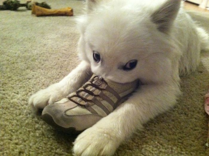 ▼狗狗為什麼喜歡這樣做?專家表示,狗狗是在聞鞋子裡的氣味。對人類來說那氣味很刺鼻,狗狗卻覺得是香味。