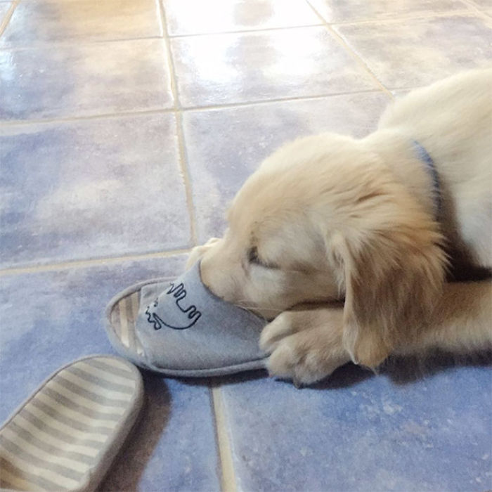 原來那麼多狗狗喜歡把嘴巴塞進鞋子裡,主人對牠們的愛好很無奈,但遠看真的很像鴨嘴獸呀。