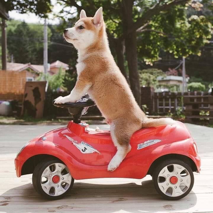 ▼🐶:「我才不是開玩具車呢!人家開的車可是很帥的!」