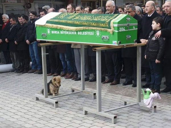 2020年04月15日土耳其79歲男子Mehmet Ilhan因病辭世後,不僅他的家人非常難過,他的狗狗Cesur也很傷心。Mehmet的遺體被從醫院送回家時,Cesur堅持守在旁邊,不願意離開。牠還跟著送葬的隊伍到墓園,陪伴主人到最後一刻。