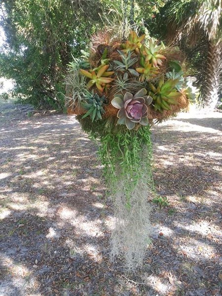 ▼這些掛在空中的多肉植物色彩鮮豔,就像飄浮著的水母,一陣風吹過,它們就像活過來一樣。
