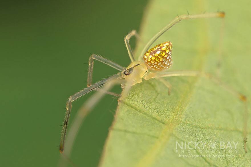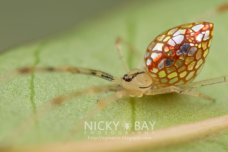 ▼這種蜘蛛叫做「鏡子蜘蛛」,也有人稱牠們為亮片蜘蛛、彩繪玻璃蜘蛛。牠們屬於銀板蜘蛛的一種,以閃亮亮的腹部而出名。