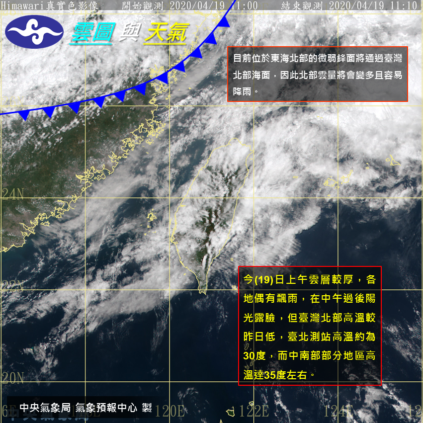 這幾日來雖然天氣回暖變熱非常多,但據中央氣象局報導,21日起另一鋒面會通過,東北季風增強,所以北部、東半部地區及中部山區會有局部短暫陣雨,其他地區為多雲,有專家分析:21日下午起,氣溫會逐日漸降,24日會降至最低溫,最低溫會來到15、16度;水氣也多,天氣會轉為「濕涼」。