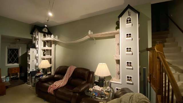 貓科動物大多喜歡爬高,但因為條件有限,寵物貓們很少有機會盡情攀爬。康乃狄克州(Connecticut)資深貓奴Rob Coutu為了讓家中的寵物貓Zach和Tabatha玩得盡興,竟花1年多的時間在客廳中建造2座高塔。他在網路上分享自己DIY的過程,網友們都驚呆了~