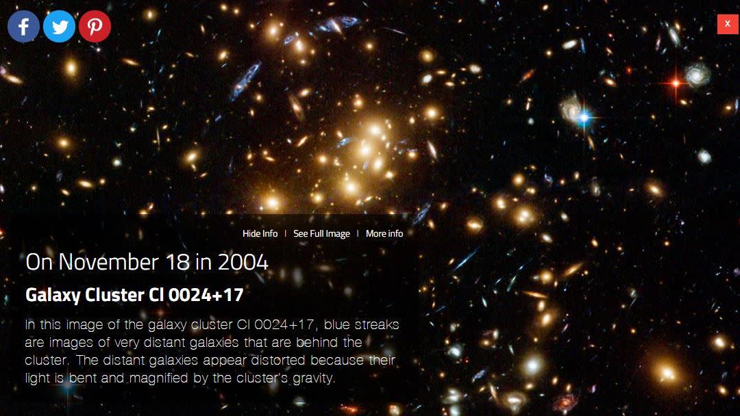 ▼這只是特定日期的圖片,年份隨機,但已經讓人很興奮了。這是11月18日當天宇宙的模樣,是2004年時哈伯望遠鏡拍到的照片。