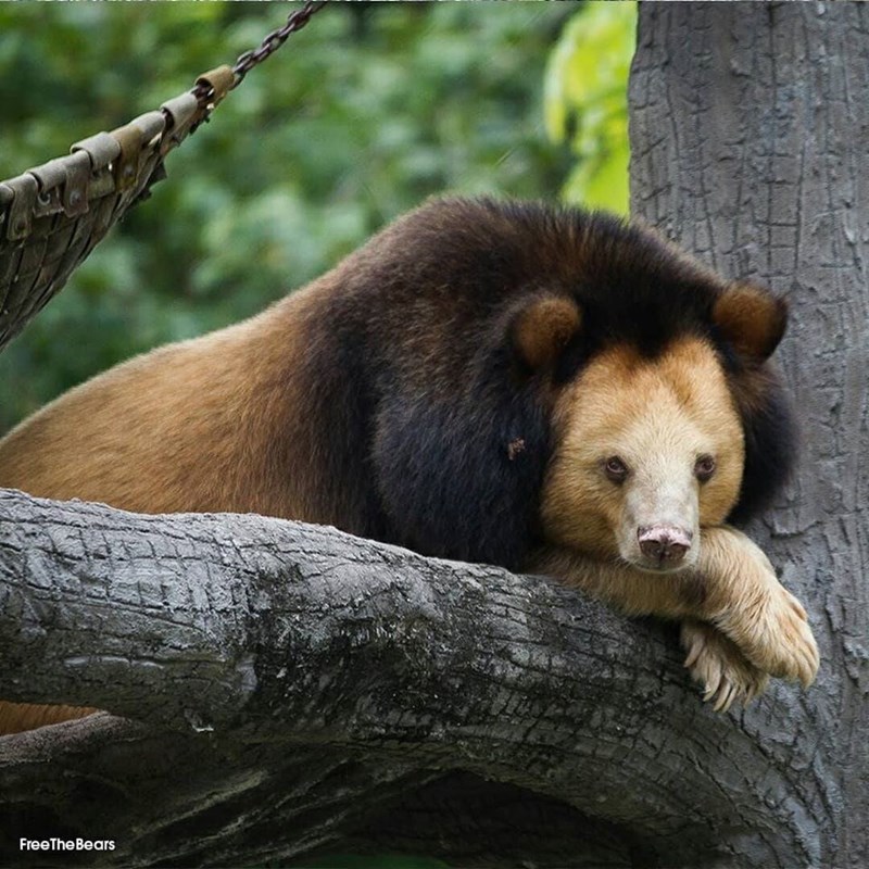 ▼原來這是一隻亞洲黑熊,叫Brandy。大部分的亞洲黑熊都是黑色的,Brandy的毛色很特別。其實在東南亞少數地區,偶爾會出現毛色為褐色或金色的亞洲黑熊個體,Brandy就是其中之一。