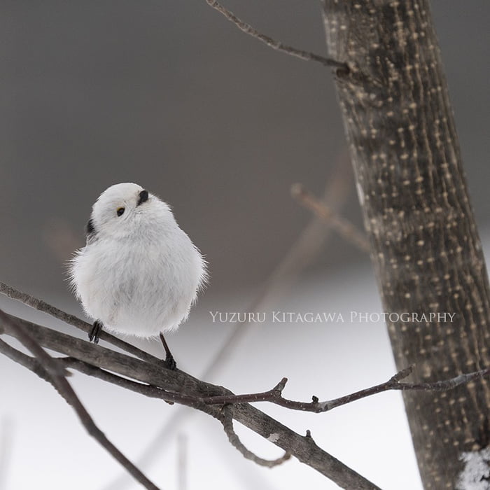 是雪球化成的精靈? 高顏值圓圓鳥「站樹梢歪頭一笑」萌到心動♡