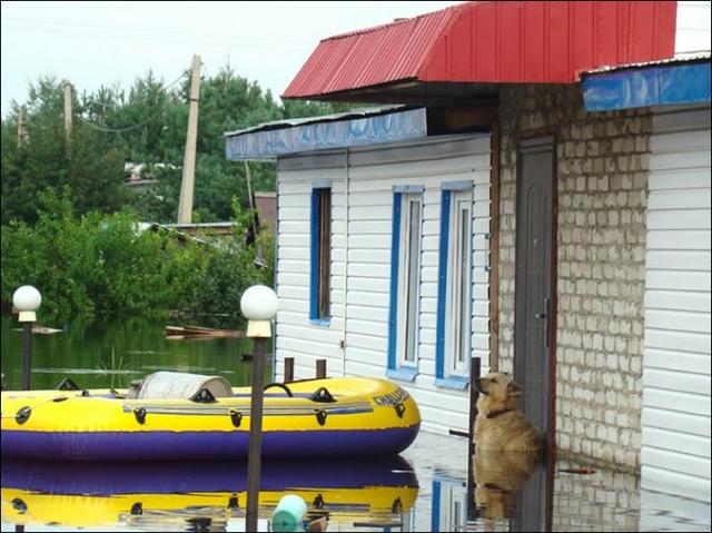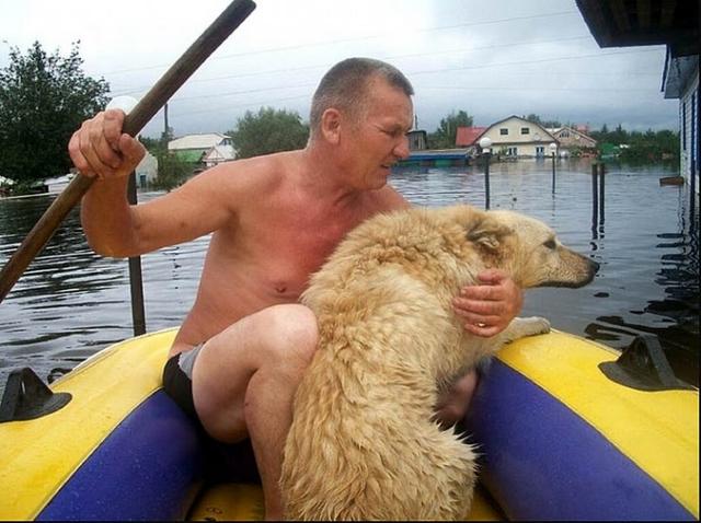 ▼主人找了好久都沒有看到狗狗的身影,他知道自家狗狗很聰明,也很忠誠,一般不會亂跑。於是主人決定回家看看。狗狗果然站在被水淹沒的家門前,牠已經在那裡守了一整夜了。