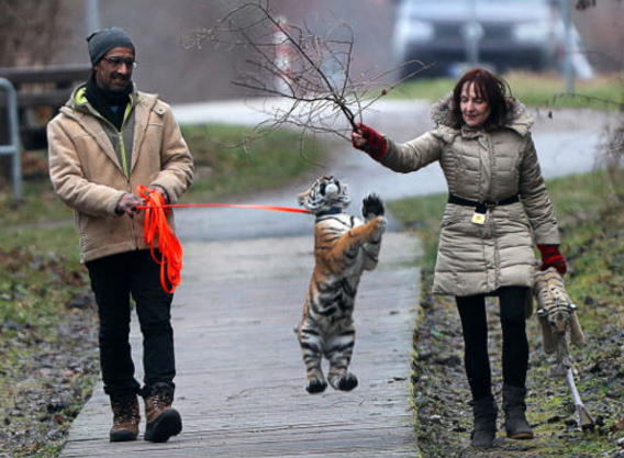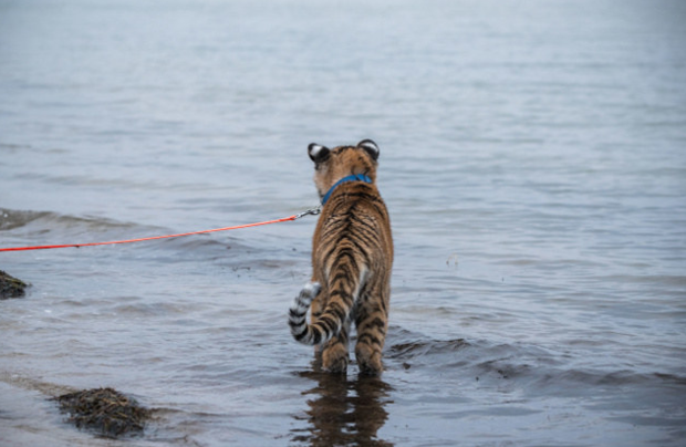 ▼小老虎需要大量的運動,Farell和老公每天都會帶牠外出散步,陪牠看不同的風景。