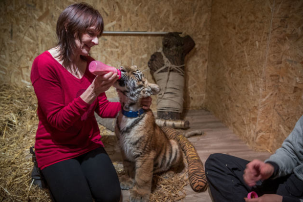 ▼去年年底,Farell得知她以前待過的馬戲團裡有一隻孤兒老虎寶寶。這隻小老虎出生時身體太虛弱,媽媽拒絕養育牠,牠也成為了馬戲團的負擔。馬戲團將牠送到當地的獸醫院,請獸醫們處理。