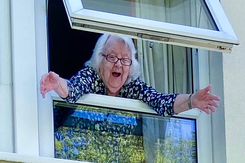 ▼因丈夫數年前撒手人寰,92歲的瓊恩目前是自己獨居的,家中沒有庭院的她已經完全沒踏出家門7週了。她的孫子威爾(Will)表示,不知道自己的女兒荷莉要長大到幾歲才能記住他的雙親和祖母,也由於瓊恩家裡沒有電腦、手機、無線網路等等設備,所以當威爾抱著小寶寶荷莉出現在瓊恩家門外時,讓瓊恩又驚又喜!