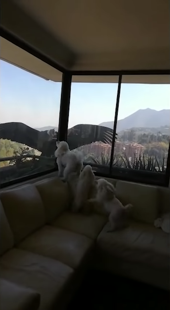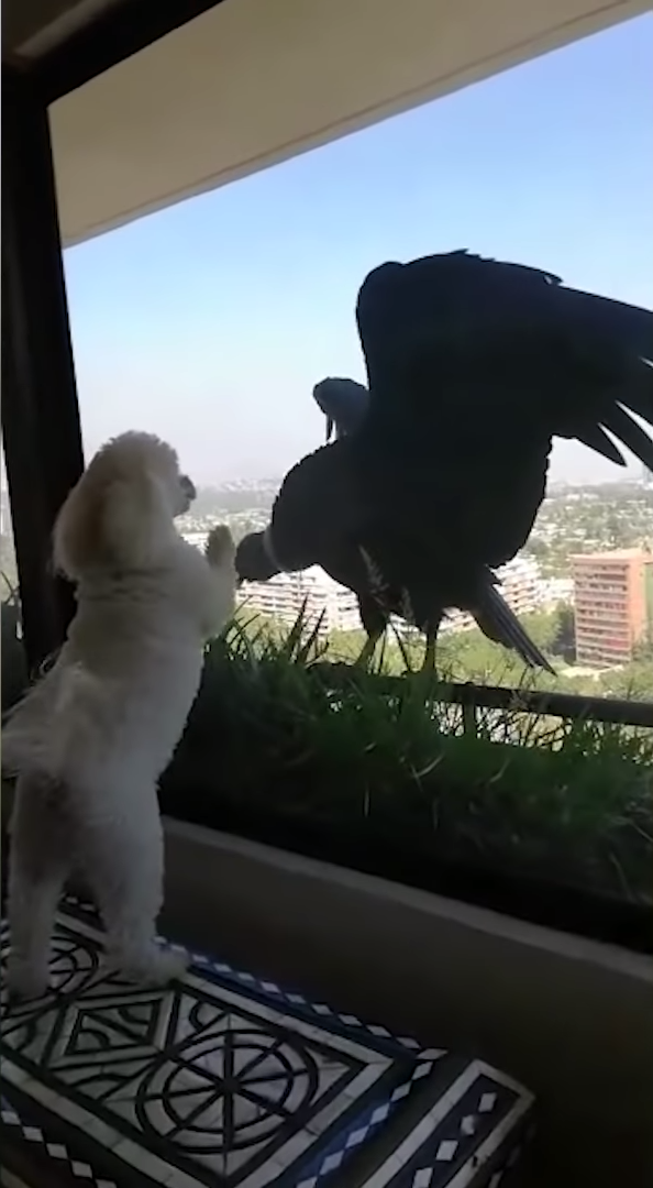 2020年05月08日近來很多國家都鼓勵民眾居家自主健康管理,沒事不要外出。人們待在家中,動物們反而跑到城市來探索了。智利就有網友拍到2隻巨型猛禽站在陽台外,隔著玻璃窗往裡看的畫面。家中的小型犬被這兩隻巨鳥嚇得狂叫,氣氛很緊張~