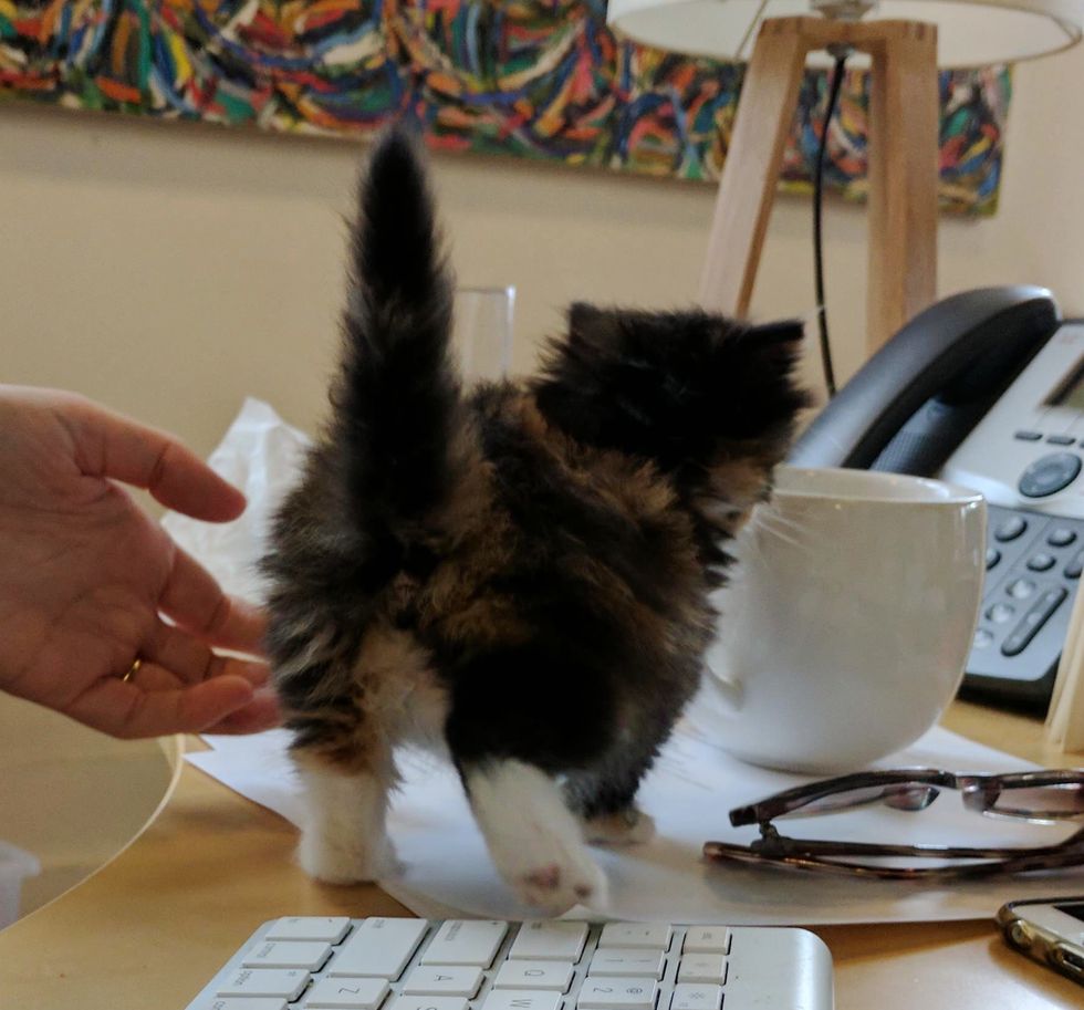 帶新領養小奶喵去上班! 牠四處趴趴走「伸小爪爪」:我來幫大家的忙~