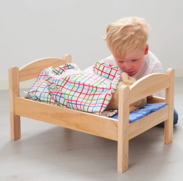 ▼IKEA的這種木製迷你小床,原本是專為洋娃娃設計的,小朋友們可以拿它扮家家酒。