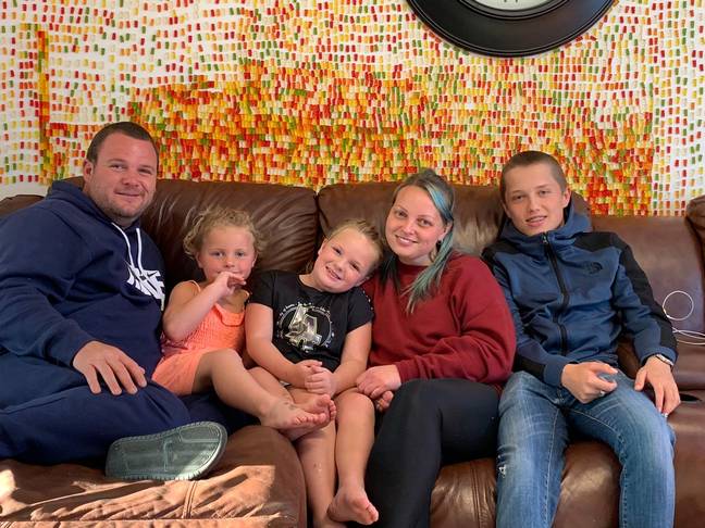 ▼Nick趁妻子不在家,和2個女兒一起佈置客廳。他們花了4個半小時把6,000顆小熊軟糖全都黏在牆壁上,整面牆壁變得色彩鮮豔,遠遠看去竟然還滿美的。Jess回家後忍不住問:「這是什麼?!」Nick得意表示,自己只是按照她的要求裝潢客廳而已。