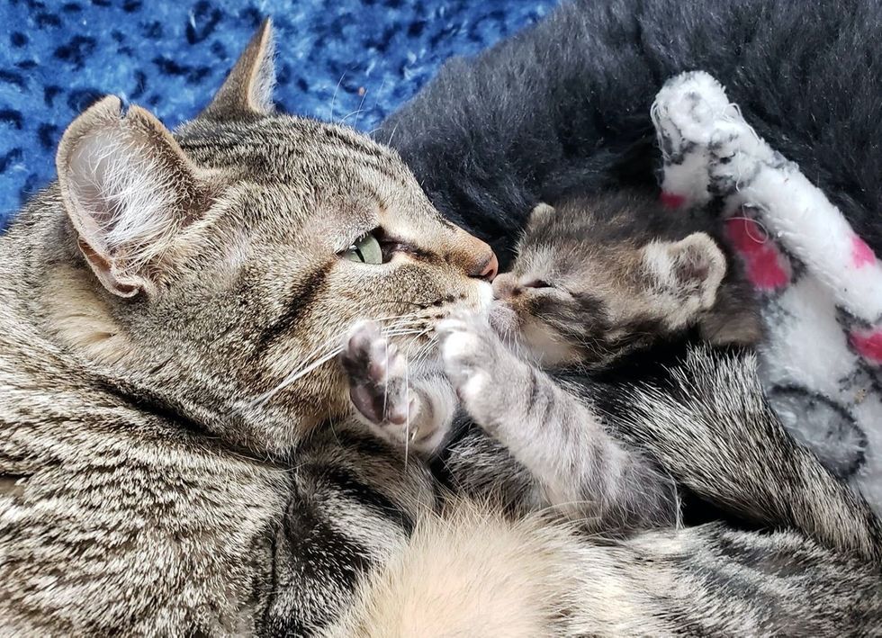 ▼Jen給貓媽媽取名為Rosa,Rosa從來沒有跟人一起生活過,剛開始很不適應。Jen悉心照顧這3隻貓咪,但其中一隻小貓太虛弱,2週後還是離開了。從那之後Rosa把所有的母愛都傾注到了另一隻小貓King身上。