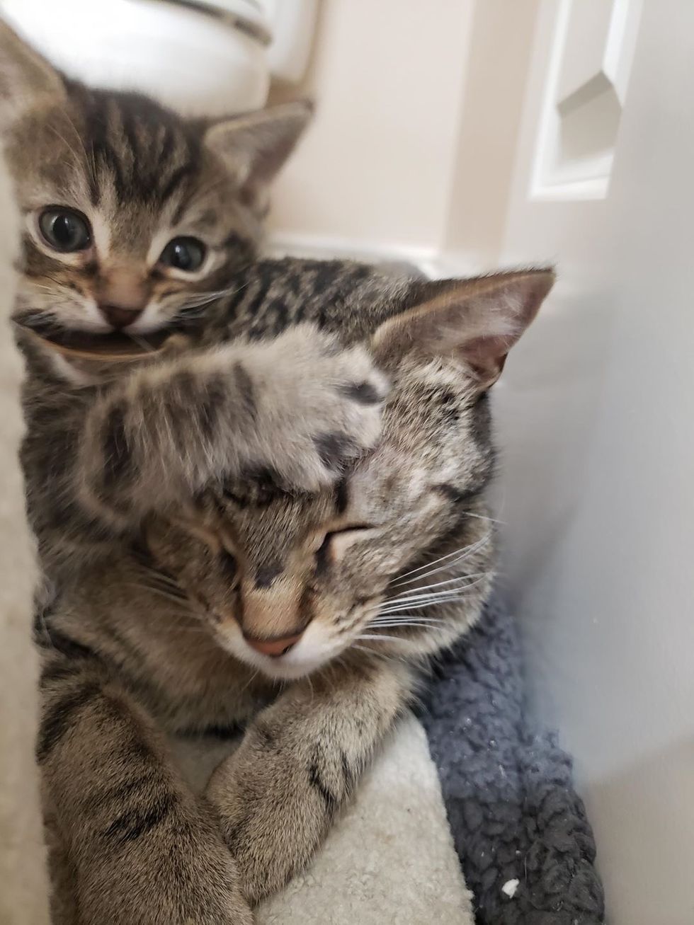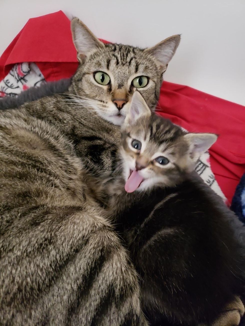 ▼Jen說:「牠們是彼此的依靠,絕對不會分開。媽媽在哪裡,小貓就在哪裡。」她希望未來有人能夠收養這對貓咪母子,讓牠們永遠都在一起。