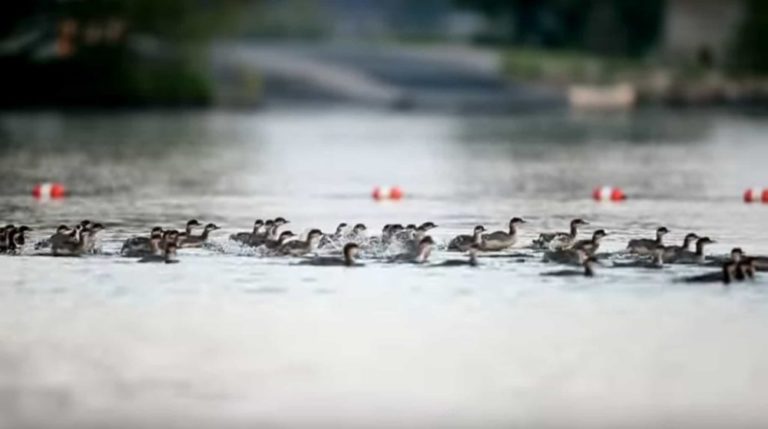 ▼Brent將鴨子家族游湖的畫面拍攝下來,po到社群網站上。一些細心的網友認真統計,照片中有近60隻小鴨。後來Brent再次到伯米吉湖拍攝,又拍到了鴨媽媽和小鴨們。這次跟在鴨媽媽身後的隊伍再次壯大,小鴨的數量已經增加到76隻了。