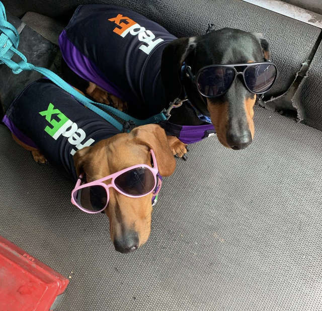 安親班不開!送貨爸「帶2臘腸上班」 牠們工作超認真:還附贈賣萌~