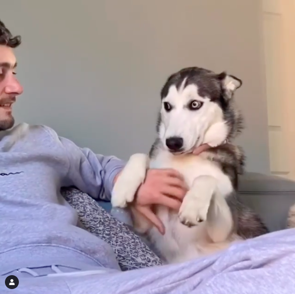 哈士奇求摸肚肚…爽到「重心不穩」被把拔笑 牠「秒變臉森77」:槓嘛笑人家啦~