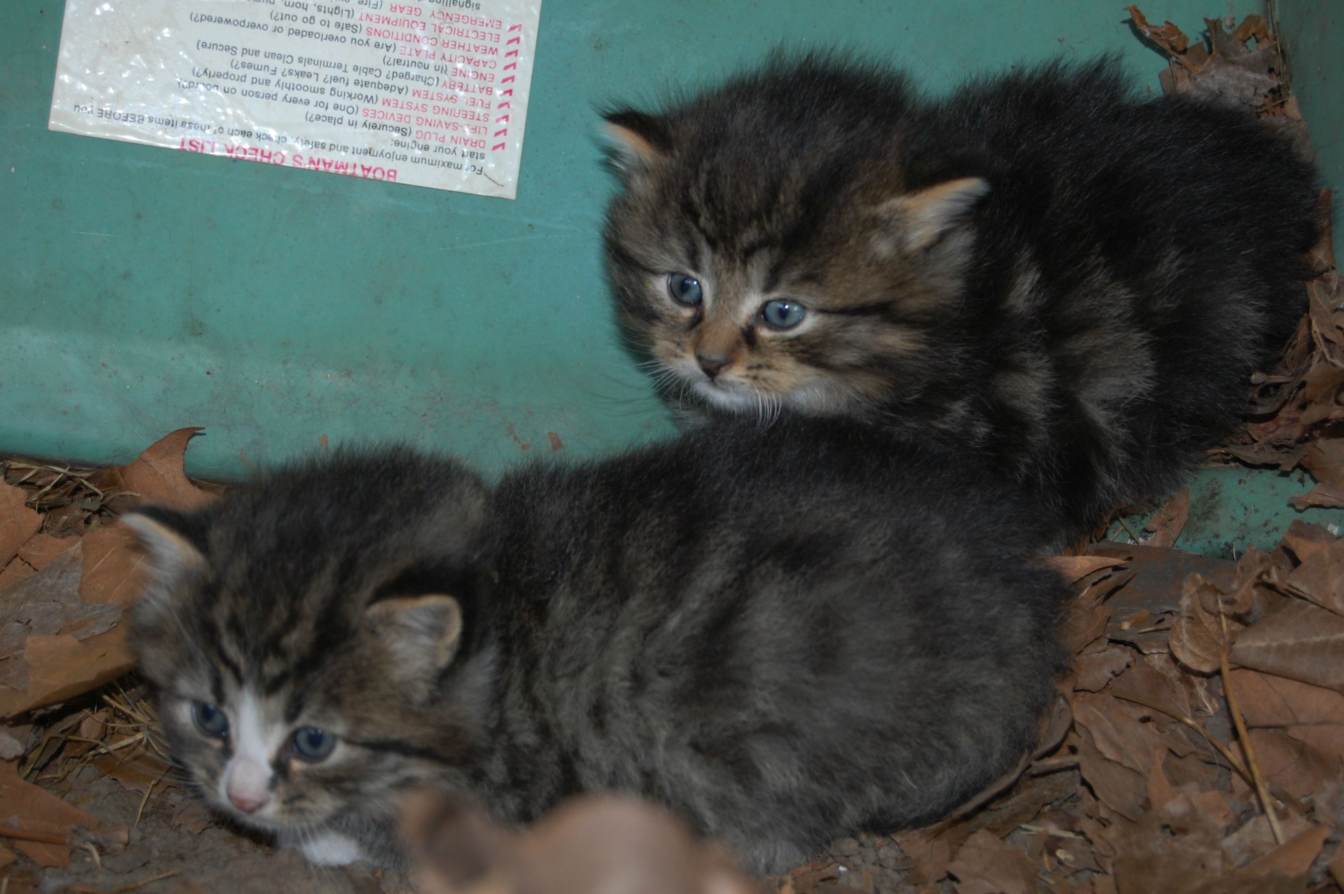 ▼主人掀開小船一看,原來裡面有2隻小奶貓!小貓們已經睜開眼睛,但還不能獨自在野外生活,誰也不知道牠們為什麼藏在這裡。