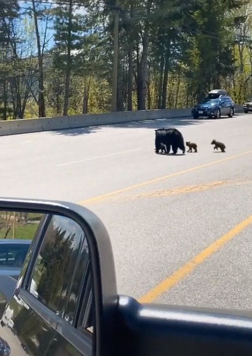 2020年05月14日國外經常能看到野生動物橫穿馬路的畫面~加拿大的一位網友就在TikTok上分享了自己的經歷:他開車時正好遇到一隻熊媽媽帶著3隻熊寶寶過馬路。當時路上有不少車輛,車主們都自覺停下來,讓熊母子先過去,那一幕相當有人情味。