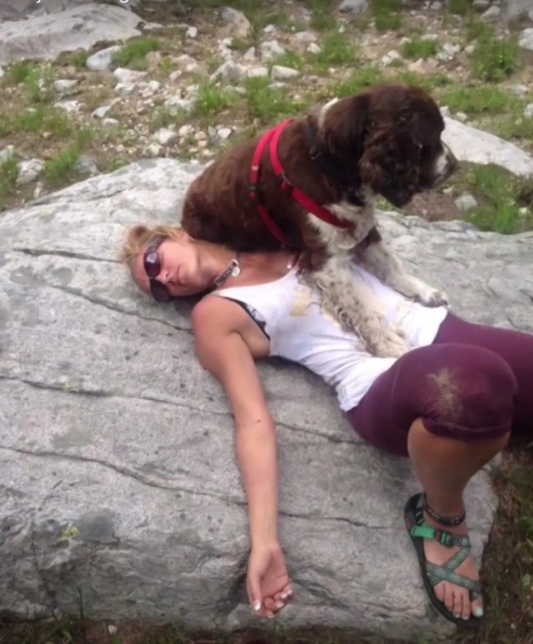 ▼Tia背著狗狗走了6個小時,終於安全回到山下,並將狗狗送到獸醫那裡治療。狗狗的爪子需要很長一段時間才能康復。獸醫發現那隻狗狗叫Boomer,並幫忙找到了牠的主人。