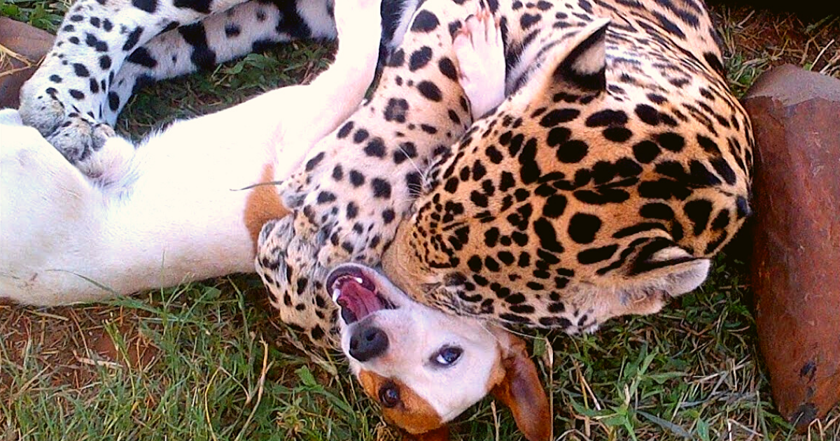 孤兒豹沒玩伴...結交「另類狗好友」 牠撲倒張嘴咬下去:給你一大口親親❤