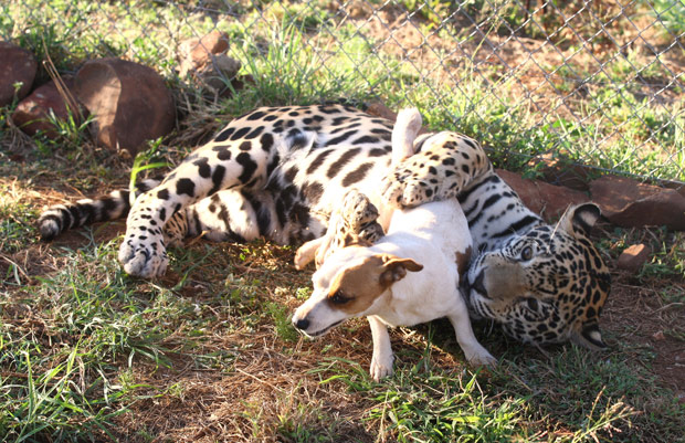 ▼眼看牠們感情深厚,飼育員也不再堅持分開牠們,而是讓牠們重新生活在一起。牠們重逢後果然恢復生機,重新變得活潑好動起來。不熟悉牠們的人看到狗狗和美洲豹在一起,會為狗狗捏一把汗,但Jay永遠不會讓Bullet不舒服。
