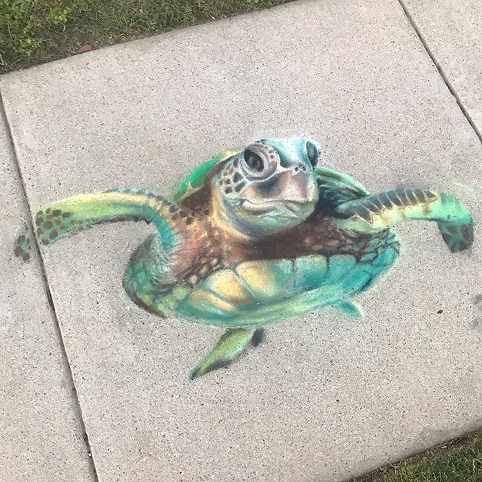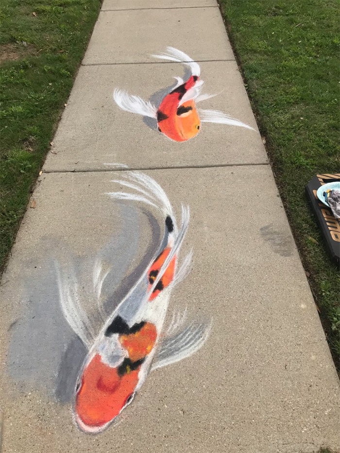 Jan的作品以動物為主,鯉魚、海龜、蜜蜂…所有的動物都栩栩如生。她以後還會繼續創作新的粉筆畫,給大家帶來更多歡樂!