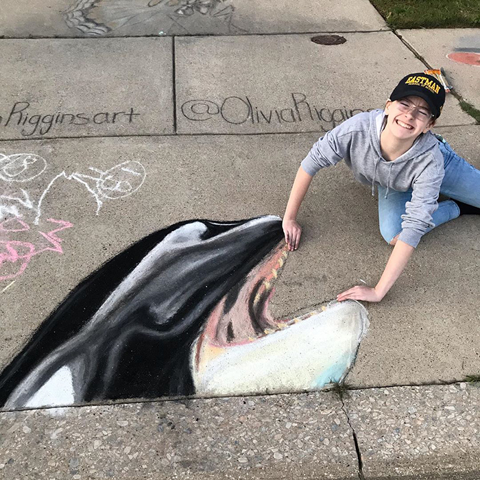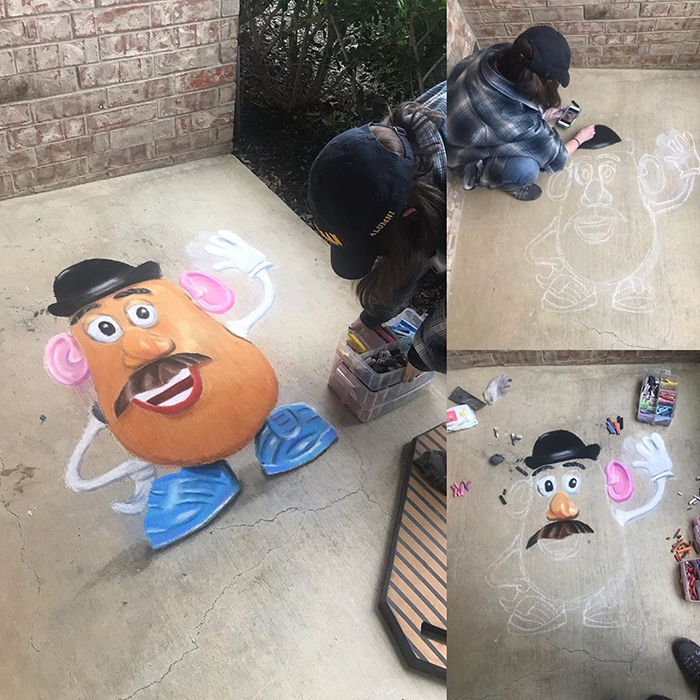 2020年05月16日藝術能給人帶來純粹的喜悅!德州沃斯堡(Fort Worth)媽媽Jan Riggins是一位粉筆畫藝術家。她經常用彩色粉筆在車道上畫畫,那些高品質的作品讓鄰居們驚嘆不已。COVID-19期間她13歲的女兒Olivia也參與進來,母女合作的作品更精彩。
