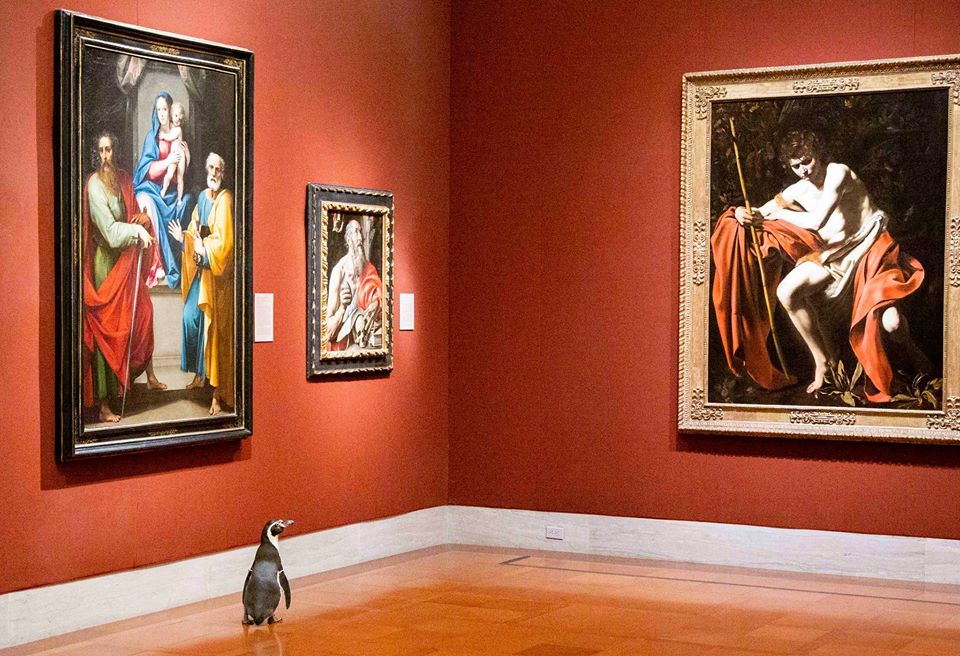 ▼博物館的館長Julián Zugazagoitia開玩笑說,他講西班牙語時企鵝們的情緒似乎更嗨。企鵝們比較喜歡義大利巴洛克藝術:「比起莫內(Monet),牠們對卡拉瓦喬(Caravaggio)的反應要好得多。」