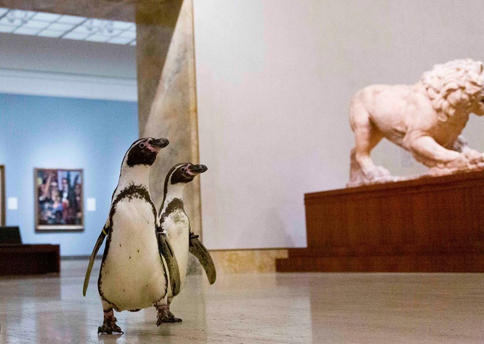 2020年05月19日近來許多國家都下令,要人們待在家中自主健康管理,動物園、博物館等設施也都暫時關閉。很多動物園為給動物們增添樂趣,讓牠們在園內閒逛。密蘇里州堪薩城動物園(Kansas City Zoo)更厲害,園內的一群企鵝竟然來到納爾遜·阿特金斯藝術博物館(Nelson-Atkins Museum of Art)參觀。
