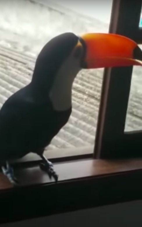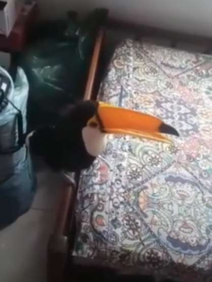 ▼那天Beatryz在嬰兒房裡收拾東西,突然看到窗外有一隻漂亮的大嘴鳥蹦蹦跳跳。那隻鳥從屋頂上跳過來,直接跳到了窗台上。牠探頭往裡看了看,似乎對這個房間很好奇,最後竟然直接跳進了屋裡。
