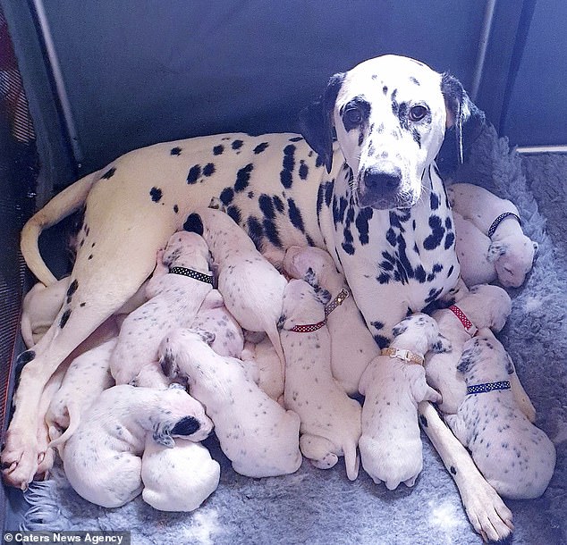 Nellie生下的18隻小狗中有10隻小公狗、8隻小母狗。Clement準備留下一隻,為其他17隻小狗找新主人。大麥町一胎平均能生9隻小狗,Nellie一口氣生下18隻,這真是奇蹟呀!