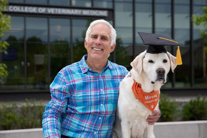 2020年05月20日今年美國維吉尼亞理工學院(Virginia Tech)的獸醫專業有一位特別的畢業生,那就是8歲的拉布拉多犬Moose,牠獲得名譽博士學位,簡直是狗狗界的傳奇!