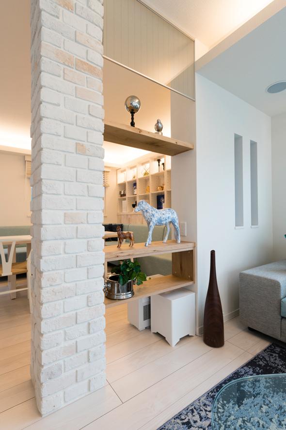 ▼餐桌旁邊有一根柱子,設計師在柱子和牆面之間加隔板,又多了一個儲物空間。