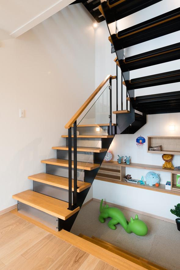 ▼通往3樓的樓梯下有一個下沈式的娛樂空間,兩家的孩子可以一起在這裡玩,原本雞肋的空間充分利用了起來。