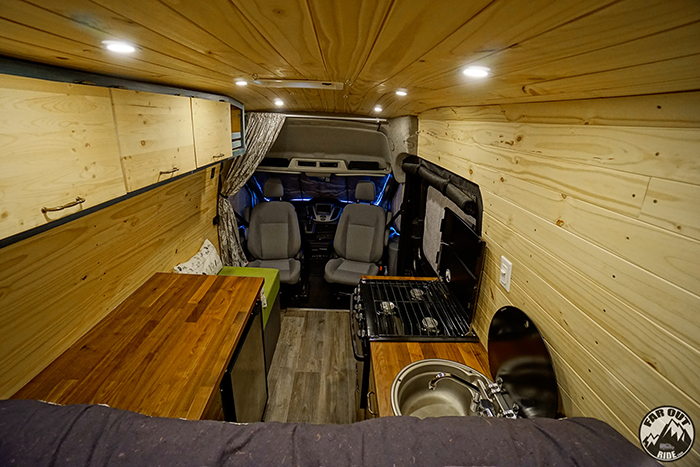 ▼小小的廂型車經過改造後,竟然可以塞進收納櫥櫃、烤箱和瓦斯爐一體的料理台、躺椅和床等等!