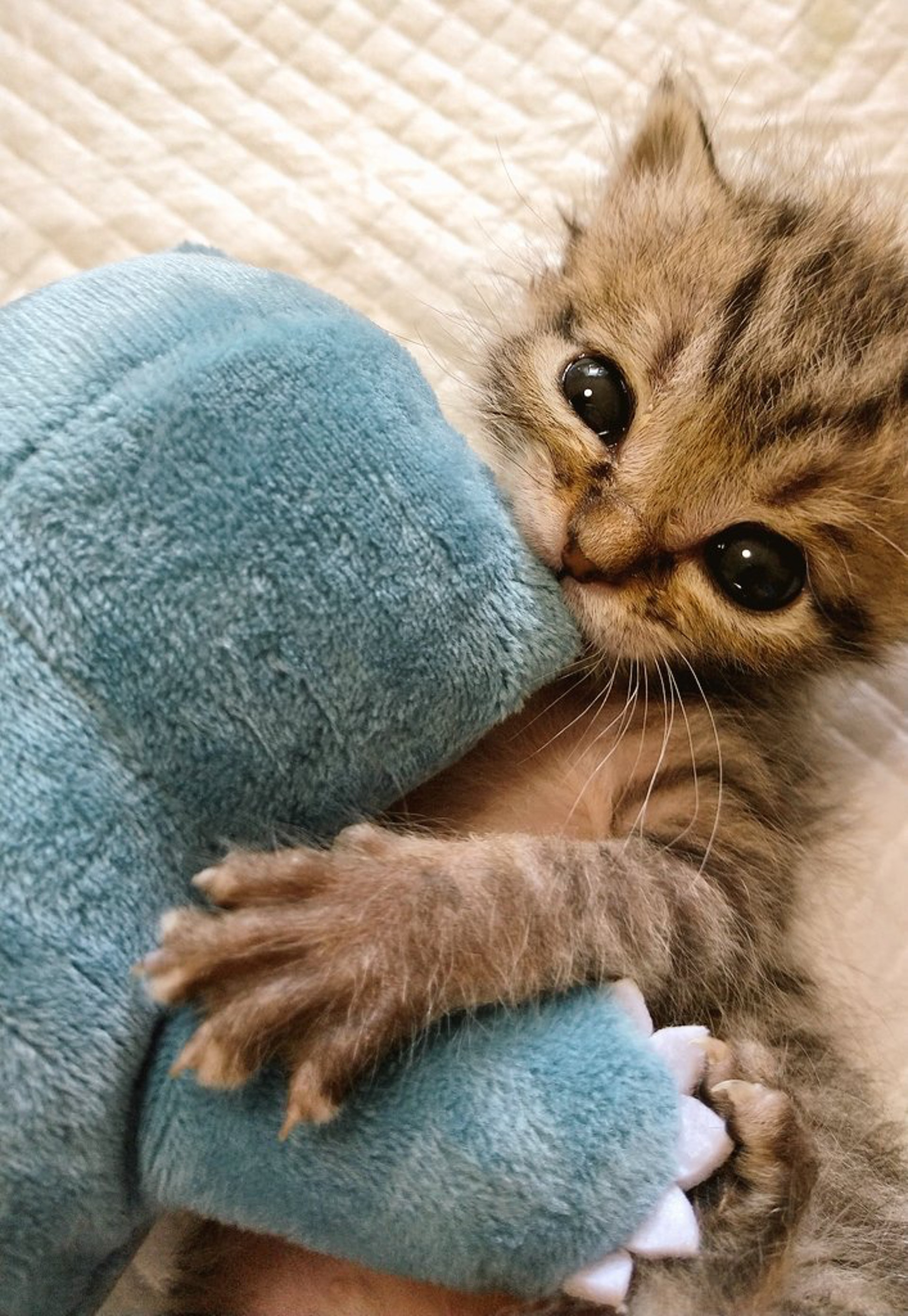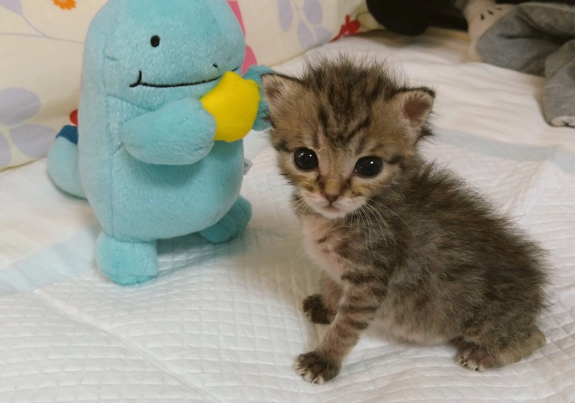 2020年05月30日動物幼崽跟小朋友一樣,都需要足夠的安全感~最近推主@cat_56chan分享了一組小奶貓抱著卡比獸玩偶的照片。剛剛1個月大的小貓呆萌可愛,牠用水汪汪的大眼睛看著鏡頭,還伸出手手抱著卡比獸玩偶,那可愛的模樣讓人心都融化了。