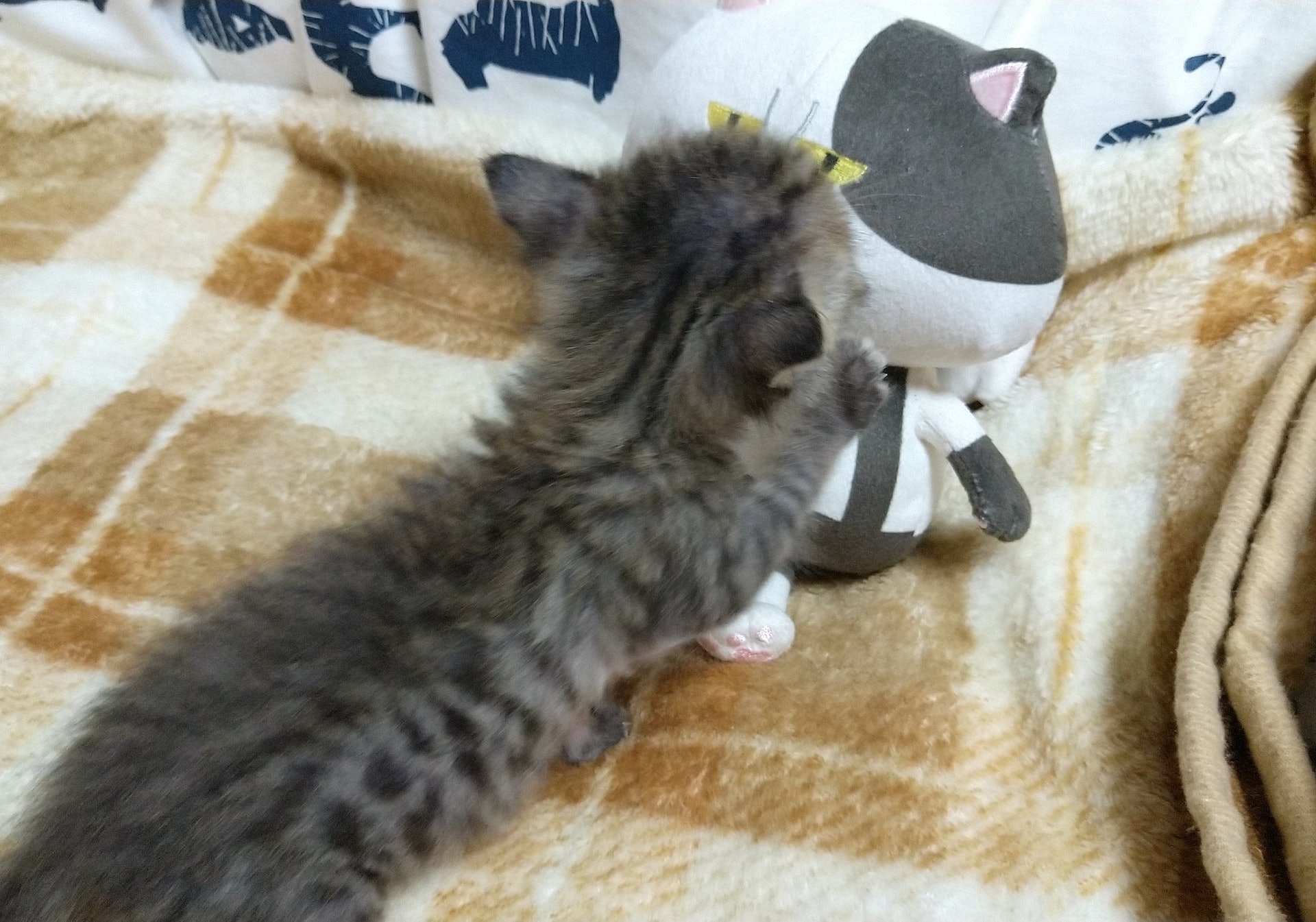 ▼除了卡比獸玩偶,主人還會把其他玩偶拿給小貓,牠可以跟玩偶做遊戲、抱著玩偶睡覺。