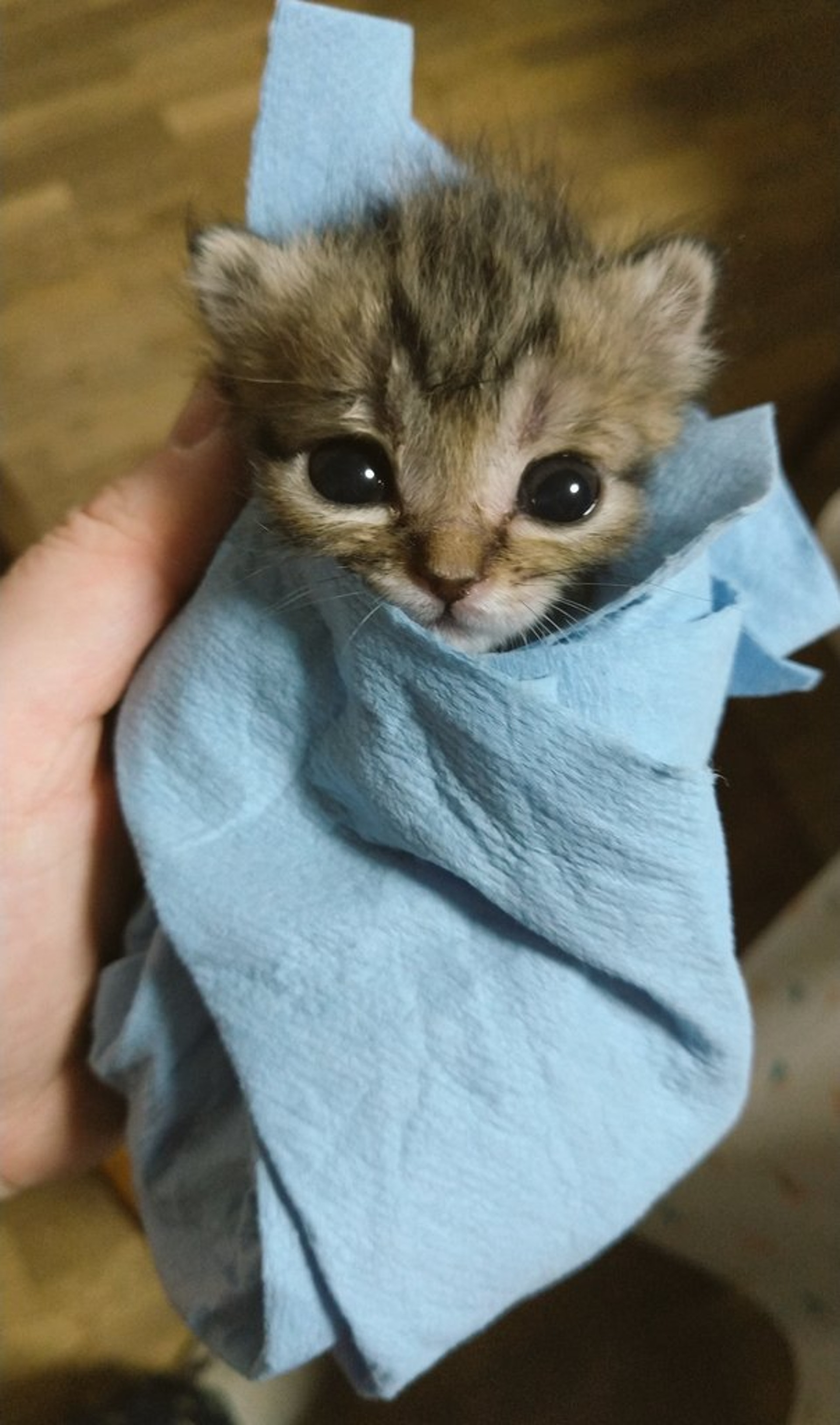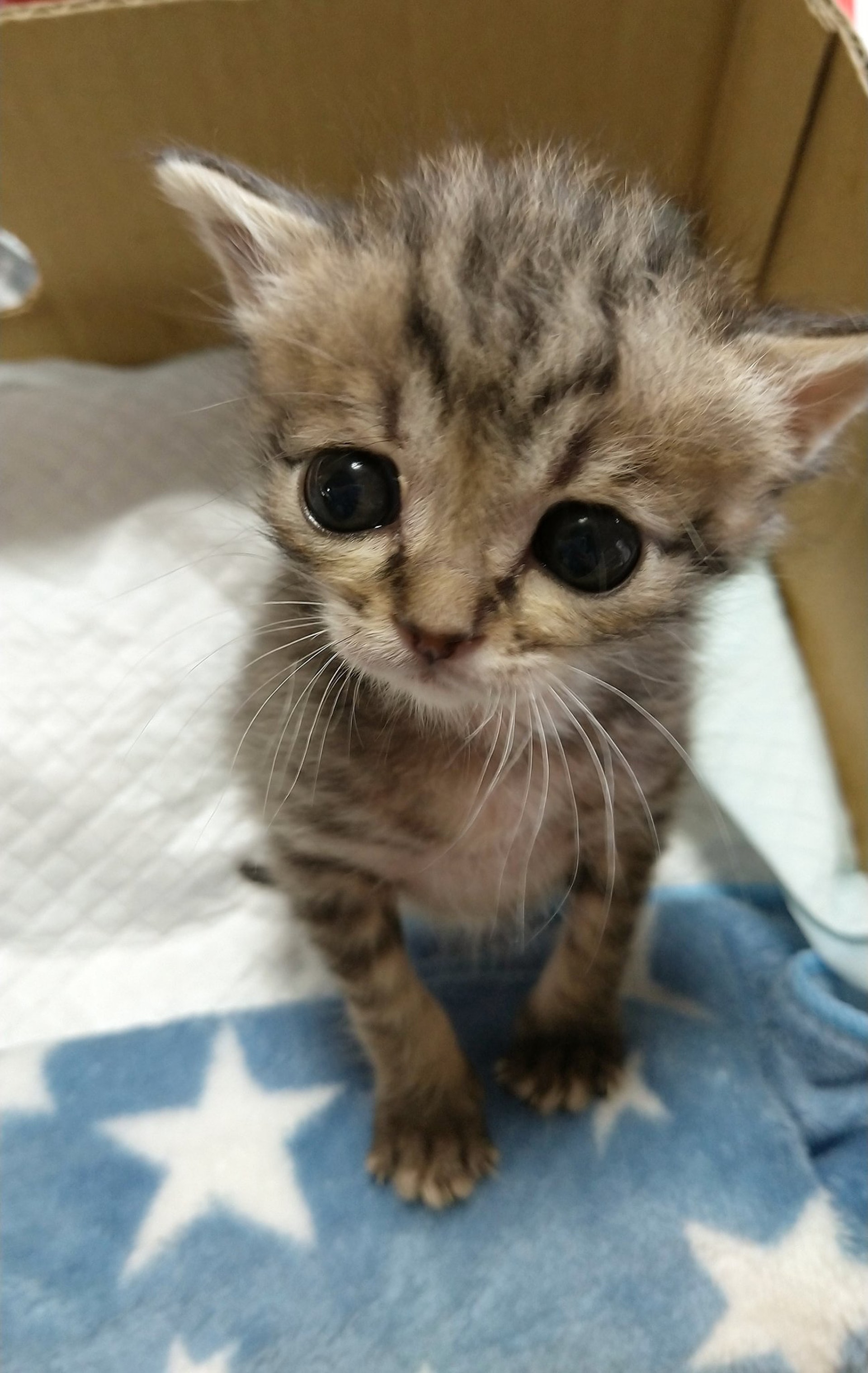 ▼貓咪年紀太小,對周圍的世界非常好奇,也很警惕。牠那雙大眼睛讓人格外憐惜。