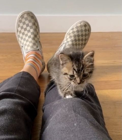 克蕾覺得他們的相遇是註定好的,決定負起照顧佩蒂的責任,只能說小貓咪真的好會選~