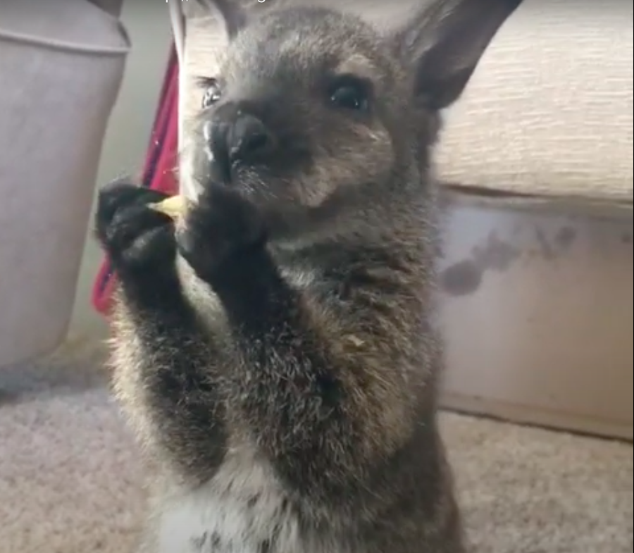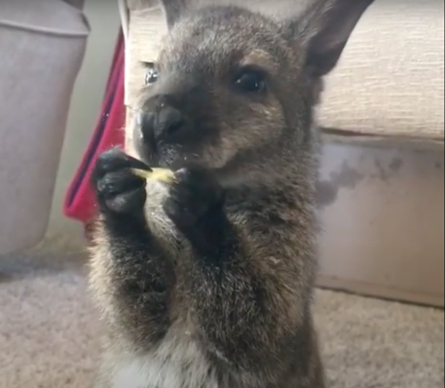 真的好珍貴!小袋鼠「雙手捧洋芋片」小口吃 療癒嘴邊肉狂動:啊姆啊姆~