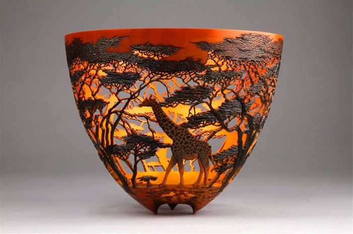 用容器完成一幅畫 非洲藝術家手彫「鏤空的世界」完全呈現草原美景