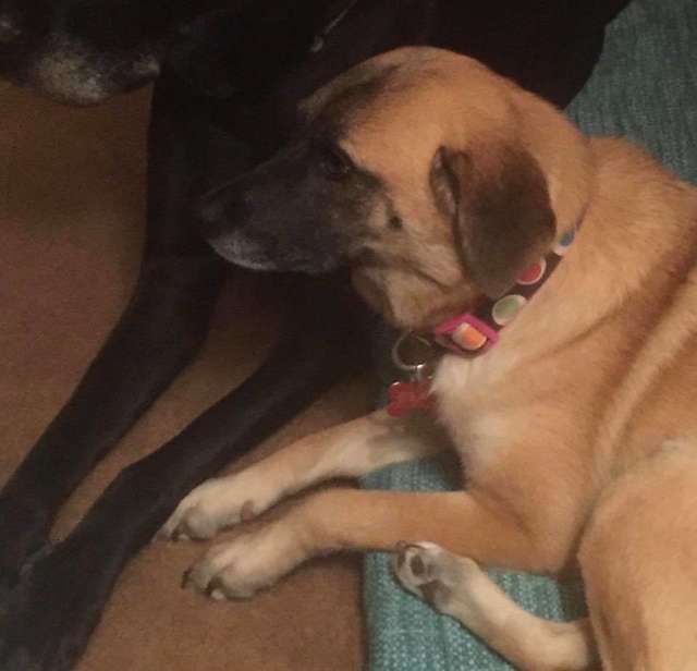▼Zelda過去曾有一段很不好的經歷。牠剛剛來到Krueger家時非常膽小,總是躲在角落不肯出來。但Krueger發現,這隻狗狗並不排斥自己,於是她耐心訓練,並讓家中的2隻狗狗跟Zelda交朋友。2個月後,Zelda開始改變,終於會對著Krueger搖尾巴了。