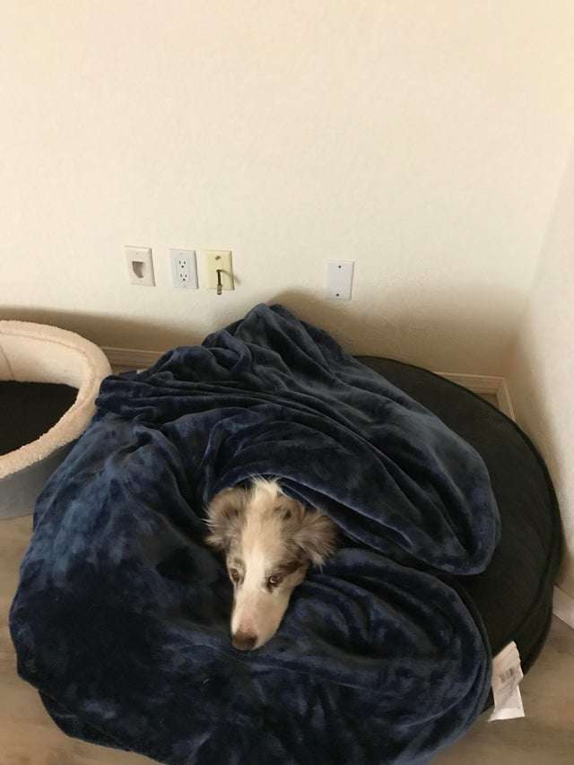 ▼Steffi家裡有3隻狗狗,另外2隻狗狗睡前會爬到馬麻的床上就位,Fusion則堅持自己的「就寢儀式」。這套儀式是牠自己學會的,牠會待在自己的專屬小床邊,等待馬麻來拿著毯子給自己蓋上。